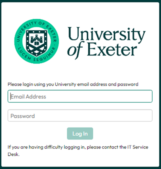 You will need to log in using your university e-mail address. For example, if your e-mail address is a.user@exeter.ac.uk, use this as your username.
