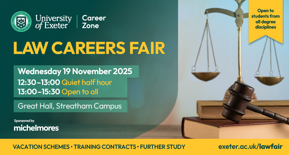 - Preparing for the Law Fair (Online), taking place on Monday 17 November, 15:30 - 16:30.