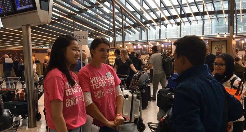 - Report to the Exeter Welcome Team (inside Terminal 5) no later than 20 minutes before your coach departure time. They will be wearing pink t-shirts and holding Exeter signs.